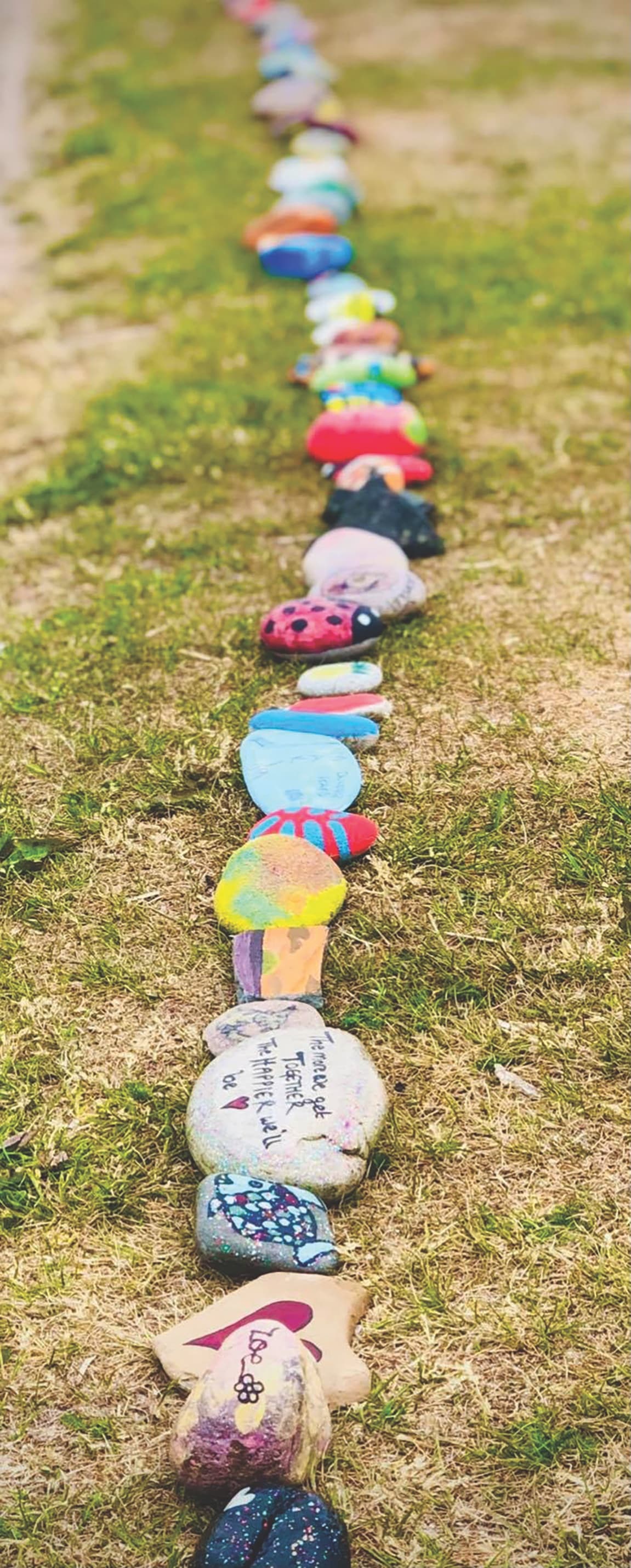 This magnificent artwork was conceived at the height of the COVID-19 pandemic in 2020. A national lockdown had been imposed in an attempt to arrest the rapid spread of a new deadly virus and during this time a single painted stone was placed at the seafront.