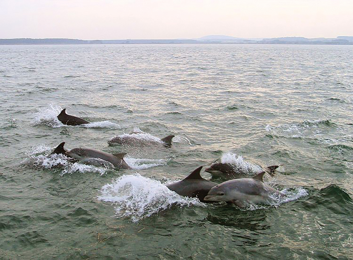 Bottlenose dolphins are perhaps the best-known cetaceans found around Scotland. Photo-identification studies indicate that around 200–300 individual dolphins occur regularly in Scottish waters. They can be seen close inshore on both the east and west coasts, but are most commonly spotted on the east coast where numbers are also highest.